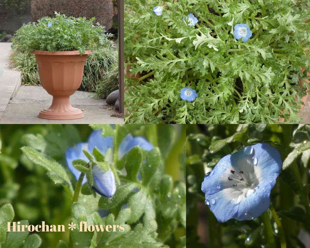 今や 葉っぱ🌿が ぐんぐん 育ち 今日は お花💙が 5つになりました。
