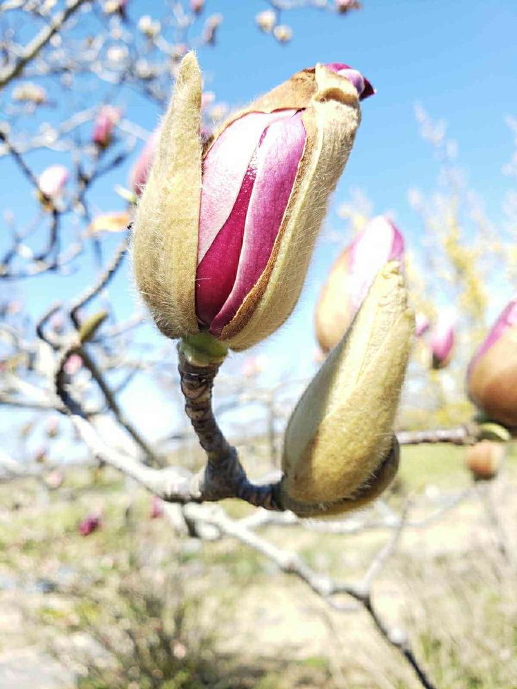 まだまだ シモクレン🌸寒いらしいね。もふもふの毛皮のコート🧥着込んでる🤣🤣