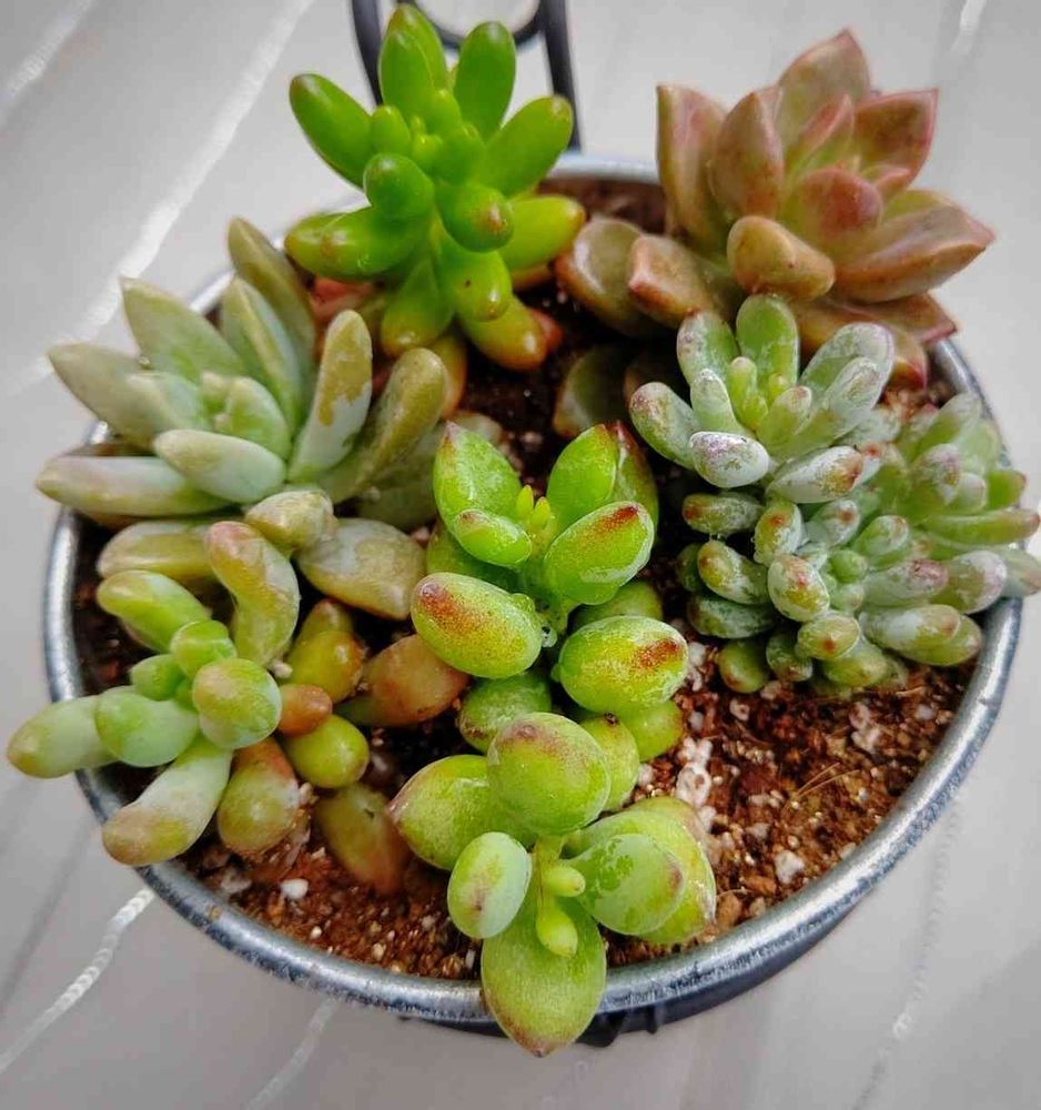 アソート6種で購入した多肉さん達。初多肉寄せ植えです。ぷっくりカワイイ(๑´`๑)♡けど小さな鉢が手に入ったら個別に植えなおそうかな?
