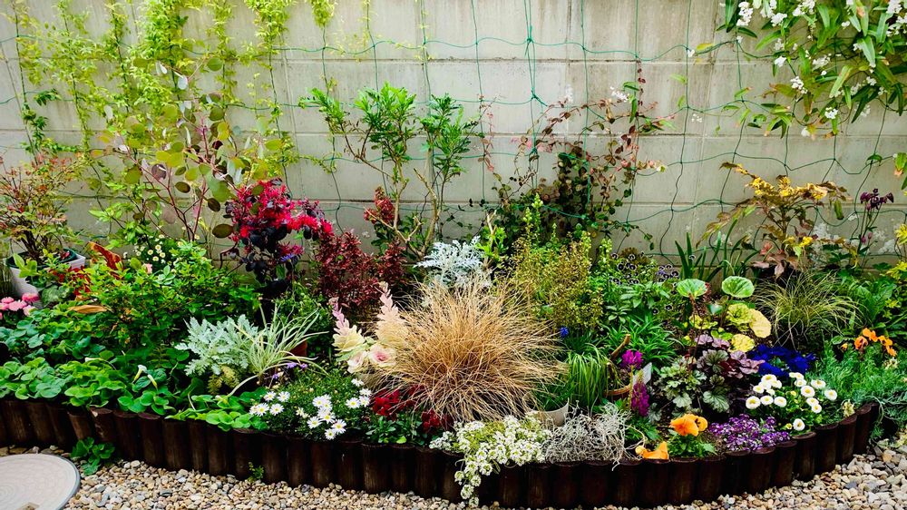 常緑植物を多めに、木と草、高いと低い、明色と暗色、同じものは二つ以下にすれば大体ハズレなしです🧐
