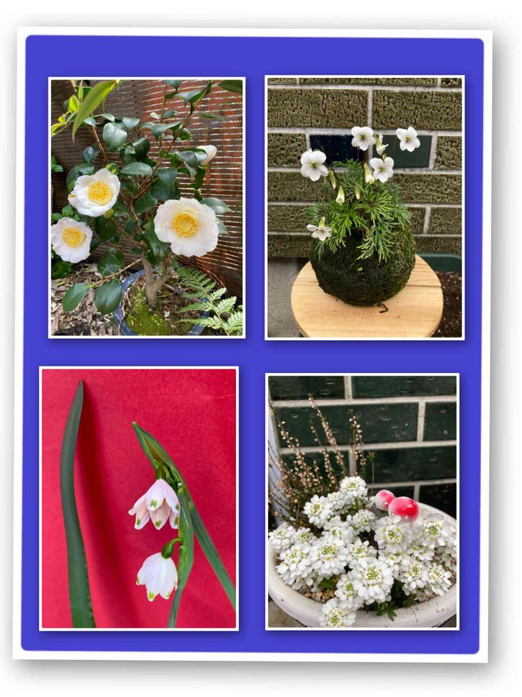 左上は、椿ですよね❤️白い椿好きです😌💓