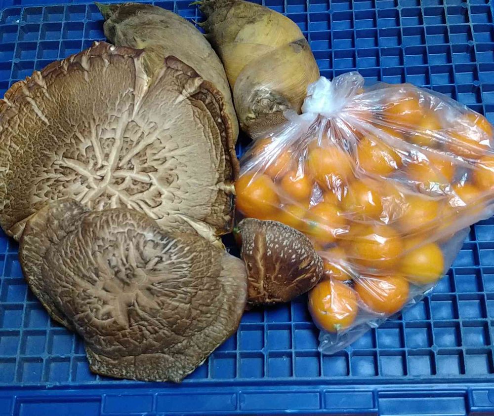 開けてみたら、筍と椎茸とキンカン🌱🍄🍊