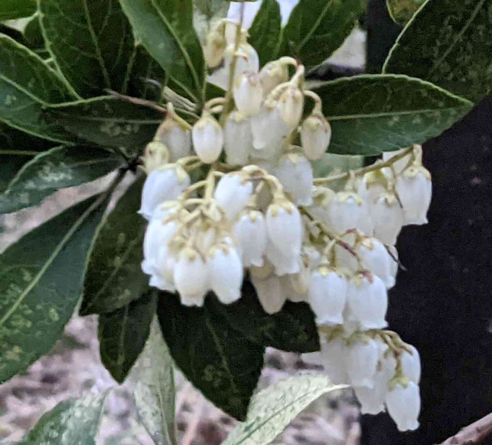 馬酔木が真っ白になりました。以前投稿者さんのお写真で部分的にほんのり赤い美しい馬酔木を見せて頂いて、その時期を楽しみに待っていましたが、それが無いまま黄色っぽい色から真っ白になっていました。…美しいです。