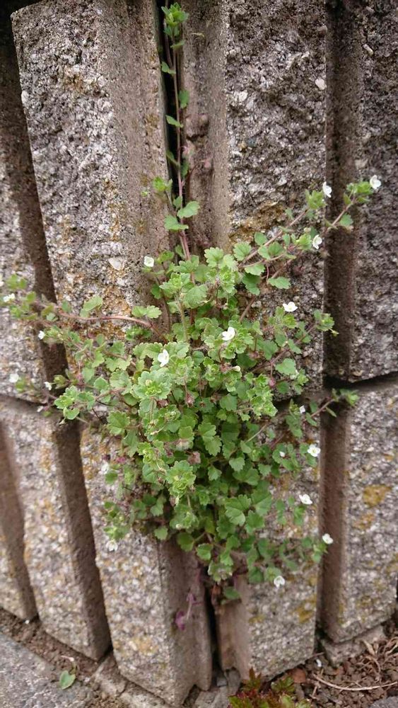このお宅の一画にだけ白い小花が沢山咲いていて、良く見るとオオイヌノフグリの様な葉っぱ🌿