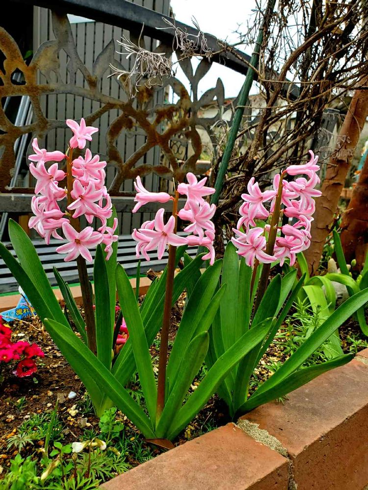 地植えヒヤシンス色々な色が咲いてますがこのピンク色は一番主張して可愛いです😌💓