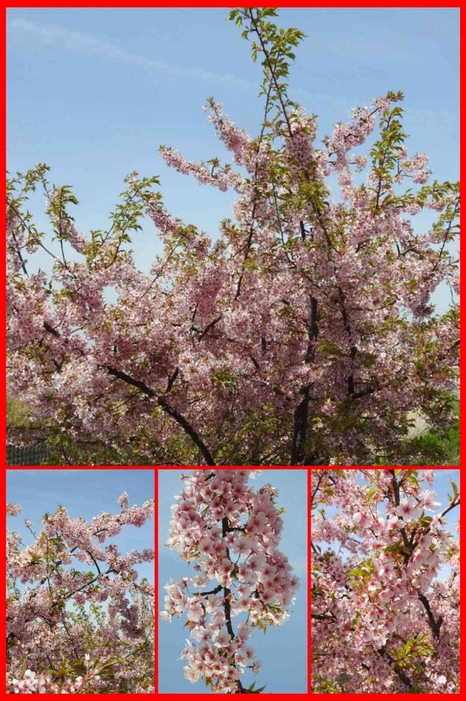 葛下川の堤で見た❗青空とコラボする綺麗な満開のサクラ少し早すぎ🌸カワズザクラの花🌸でしょうか?