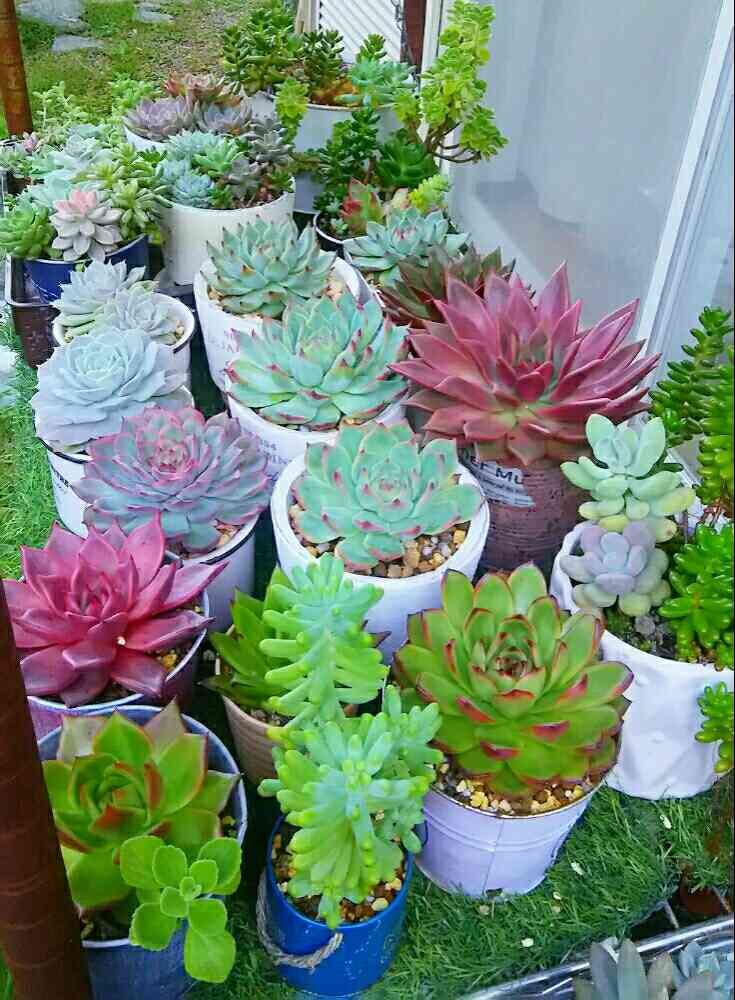 今日も多肉棚の多肉ちゃんたち❤は元気モリモリですぅ( *´艸`)✨✨