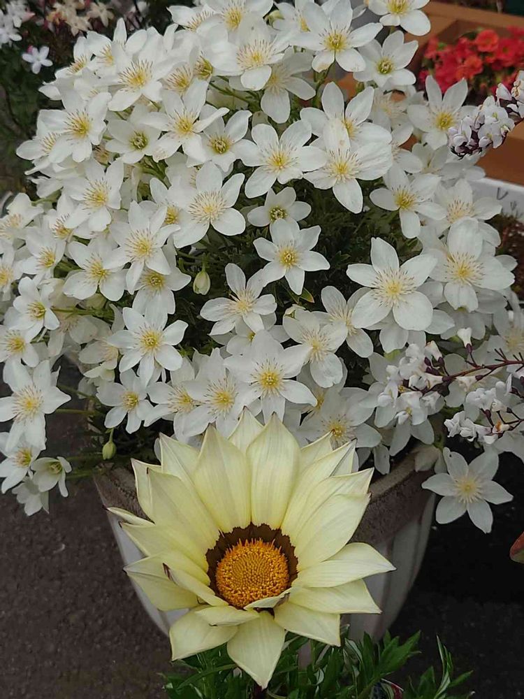 下👇が超大輪ガザニアの淡い黄色💛その上👆に見えるのは過去pic🆙済みのクレマチス