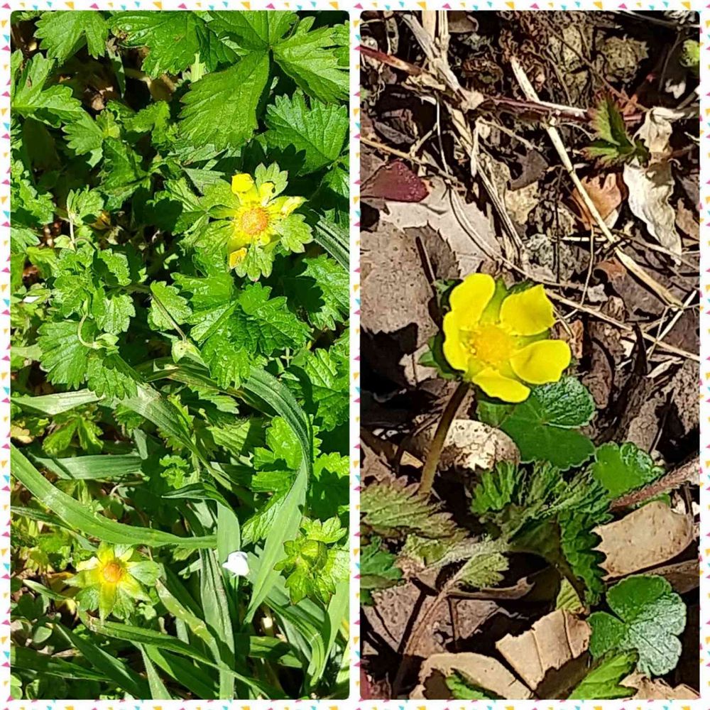 ヘビイチゴ、名前に反して😅可愛い💛のお花だよね❣️ まん丸の赤い実をたぶん…