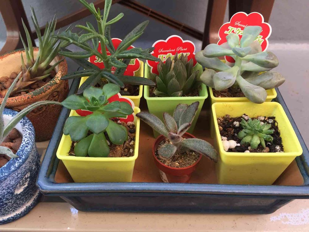 軽くて飛びそうなダイソー君や1号鉢は、お弁当🍱のオカズみたいに植木鉢にそのまま並べちゃいました。手抜き多肉料理😅