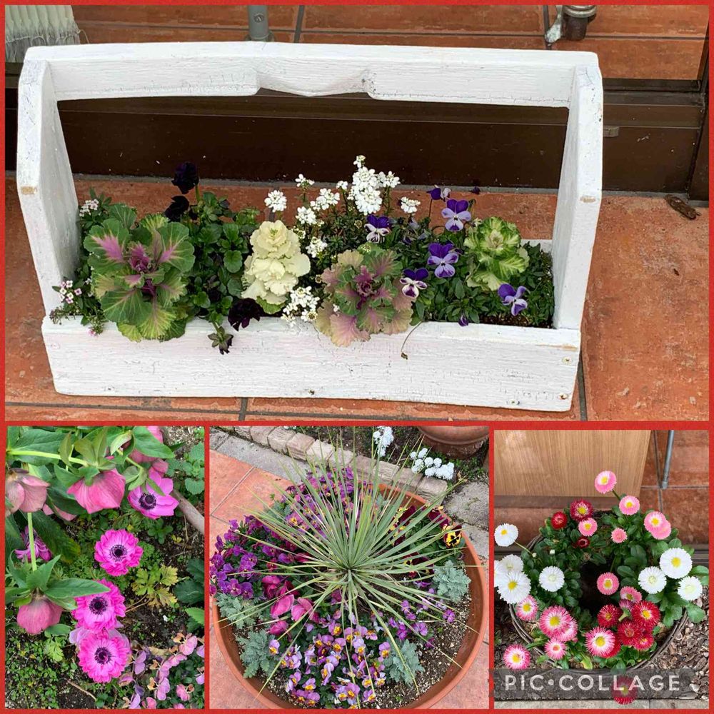 ⬆️のDIY風の木箱の寄せ植えがとても素敵でした🏵