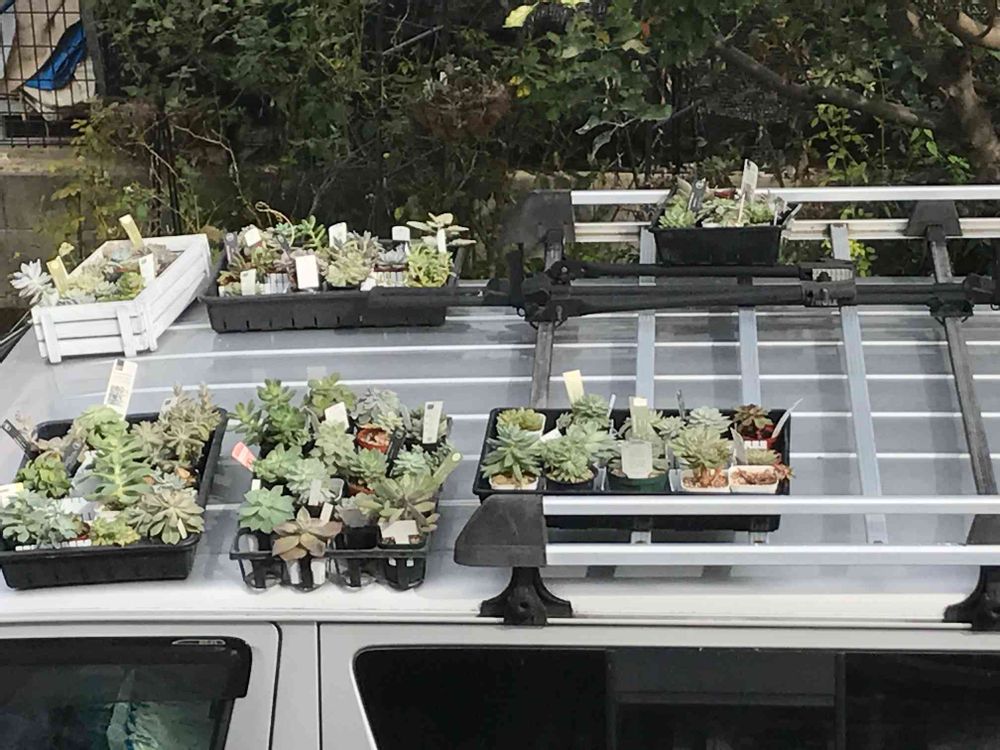 我が家の2階から見た風景ですが、天気のよい日は、トレーに移して、日向で邪魔にならない、車の屋根に置いています。雨が降らない時の日課になっています。もちろん、夏にはしませんが〜。それにしても、多肉ちゃんがいきいきする季節になりましたね。葉挿し用から根が一斉ににょきにょき生えてきて、毎日チェックと植え付けが大変です😋