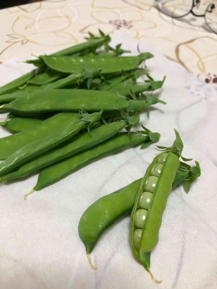 採り損ねた育ち過ぎプックリキヌサヤを開けてみたらグリーンピースじゃん😲