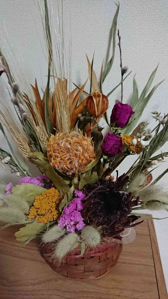 ドライフラワー買ってたのを、やっとアレンジしました。