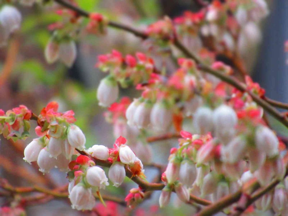 @サワーポメロさんこんにちは😃ブルーベリーのお花、こんなに可愛いのですか❓赤のも付いているんですね🤗知りませんでした可愛い💕