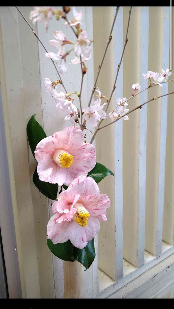 ピンクの桜🌸と椿、待合室が一気に華やぎますね