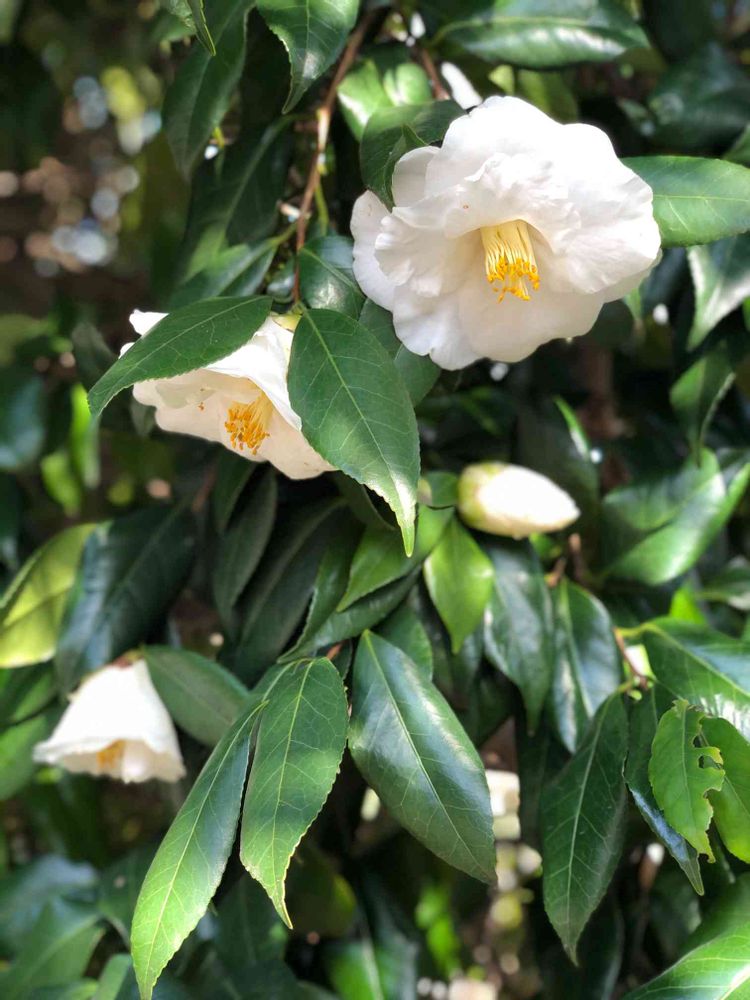 いろいろな椿のご紹介、楽しませて頂いてます 💛 白 しかもフリル 珍しいですね 🎶