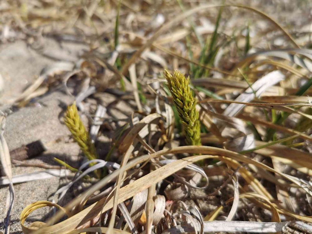 先日浜辺で、麦の穂のような植物を見つけました。調べてみたところ、コウボウムギという海浜植物のようです。