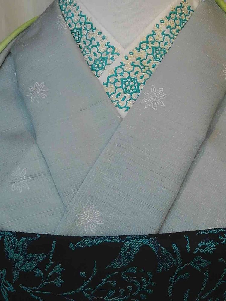 素敵な半襟、着物👘も帯も色合わせがお洒落ですね。着てみたいです。