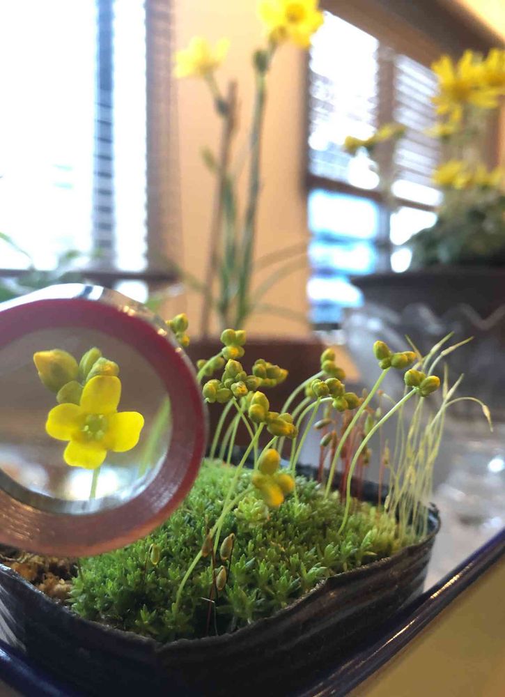 苔に黄色い蕾⁉️(´⊙ω⊙`)!って、もう目が離せなくなっちゃった😆
