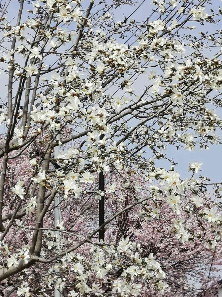 @こんなに見事なコブシの花と後の桜も🌸綺麗やわ