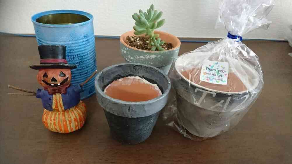 今日は幸田の木工市に行ってきました。 ハルさんのお店で買った物といただいたリメ缶とリメ鉢。何を植えようかな🌼 ハロウィンの置物はお店の飾りだったのを無理言って買わせていただきました☺☺☺ ありがとうございます😆😆