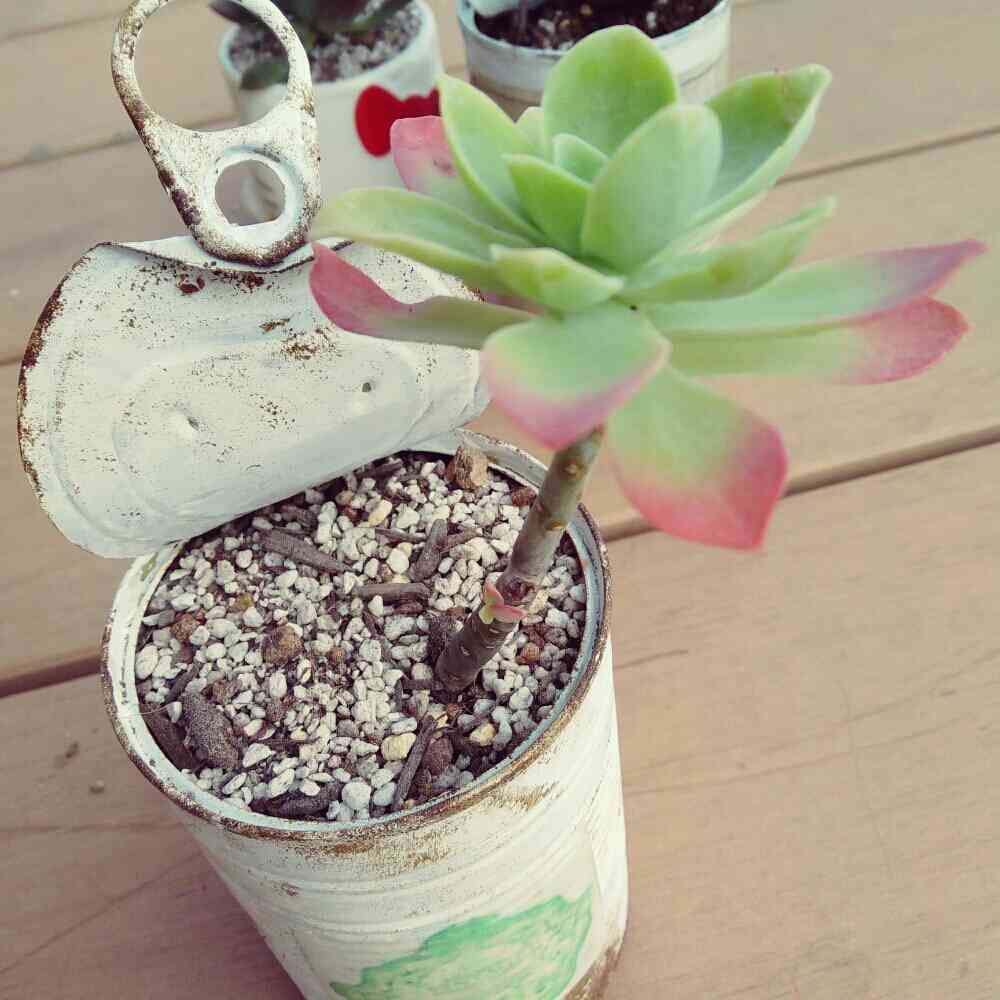 ビニールポットは可哀想なので、リメ缶に植え替えました。