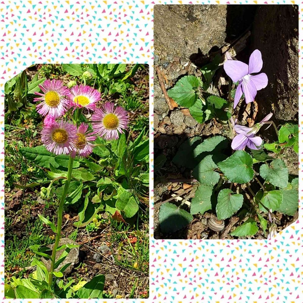 ピンクのハルジオンも薄紫のすみれも野の花なのに綺麗だよね。😊