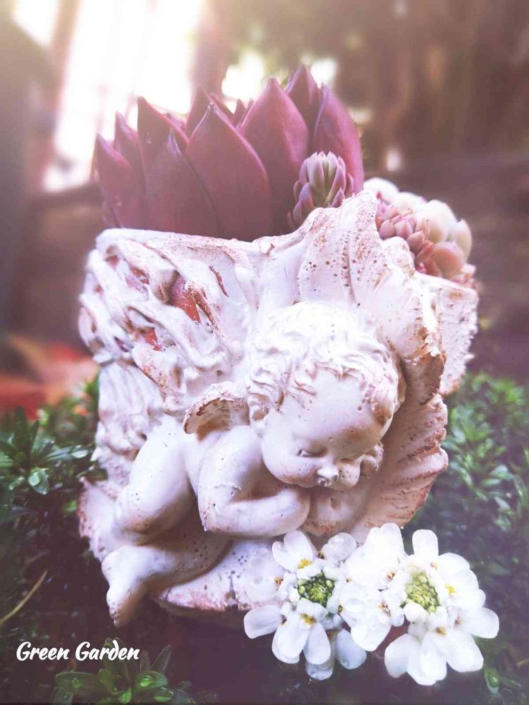 素敵なエンジェル👼ちゃんの鉢に多肉のギルティーさんとても素敵ですね💖