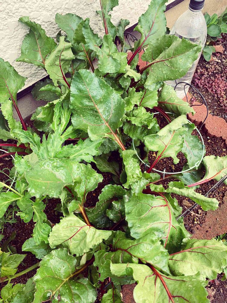 おはようございます。玄関先のサラダビーツが密です。そろそろ収穫しようかなぁ〜