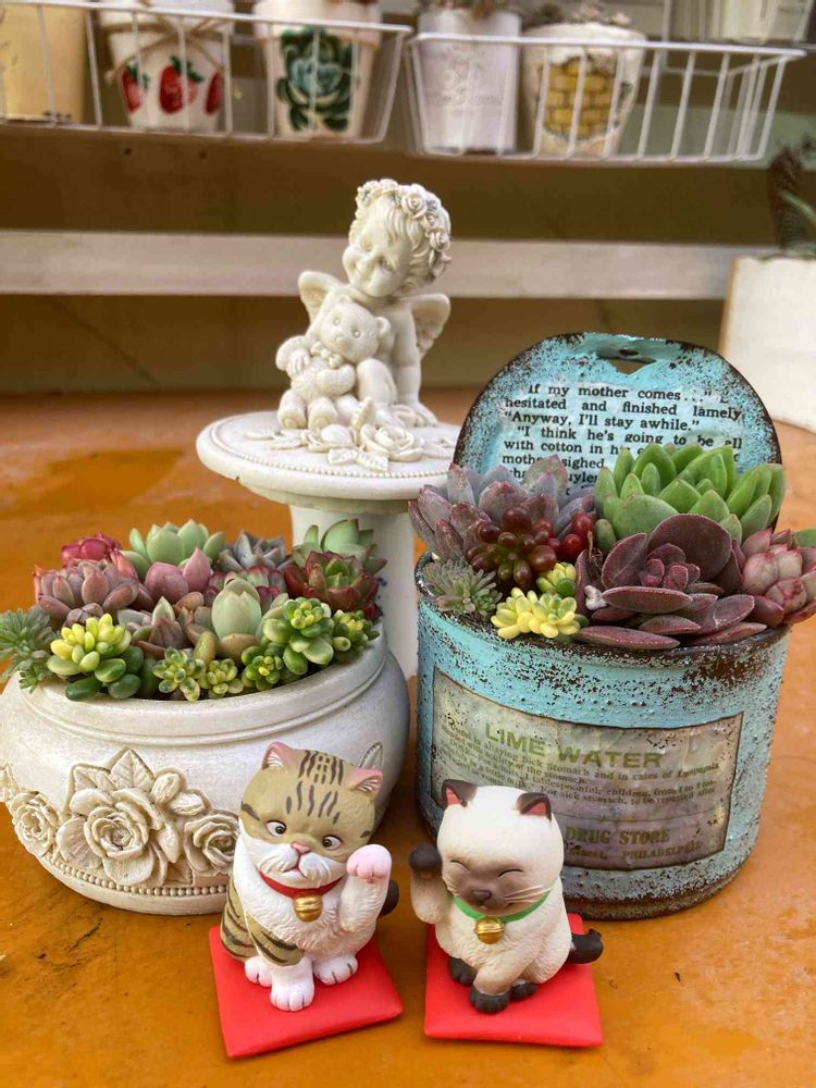 多肉さんも招き猫さんも可愛い😊✨