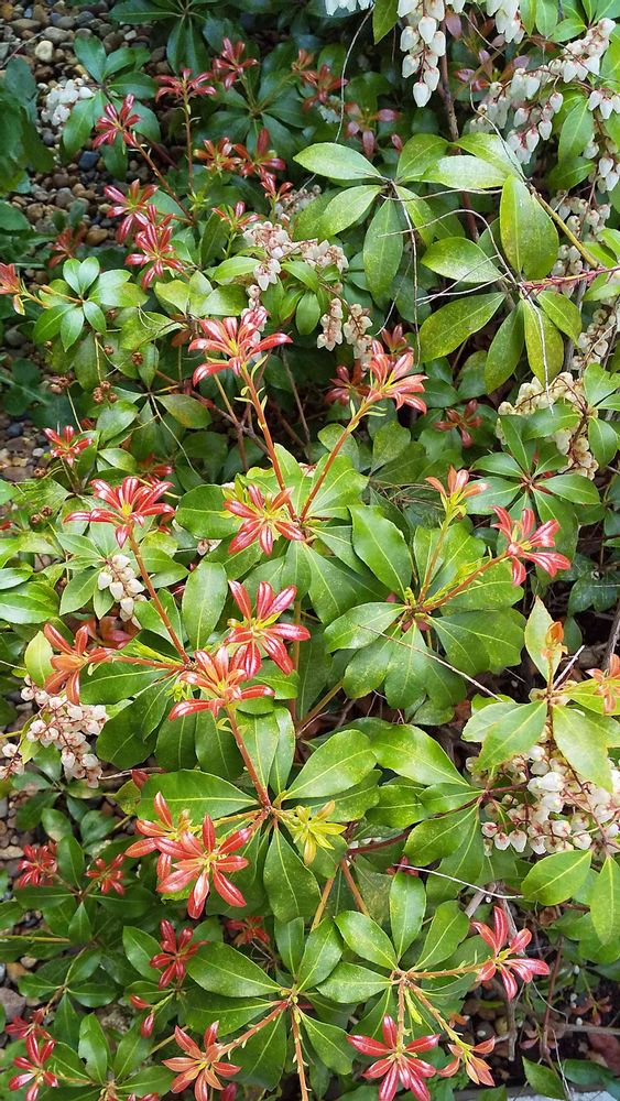 馬酔木の新芽が赤いお花が咲いているようで綺麗です。