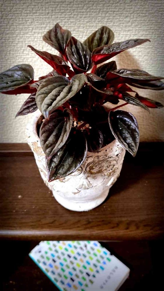 昨夜は窓越しに嵐🌀がきていて、音が怖くて寝付けなかったので、出窓にいるペペロミアさんに枕元に来てもらいました