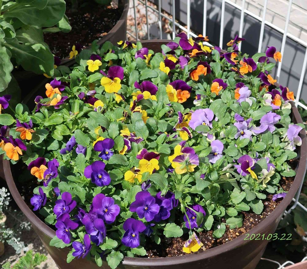 ビオラさんの鉢 全体的にかなりの摘芯を行いましたが、もうモリモリしてきました 💚