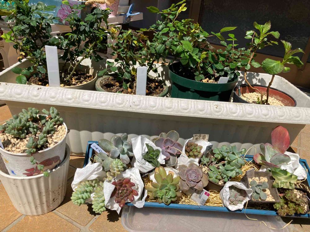 丁度いらなくなった雨どいをぺイントしていたので、まとめて寄せ植えして、貰った方の名前で、ガーデン作りたいと思ってます。🤣