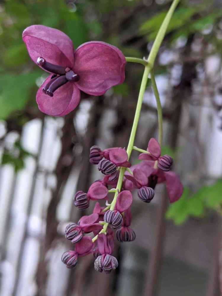 アケビの花、色が濃ゆいねぇ〜💜💜💜