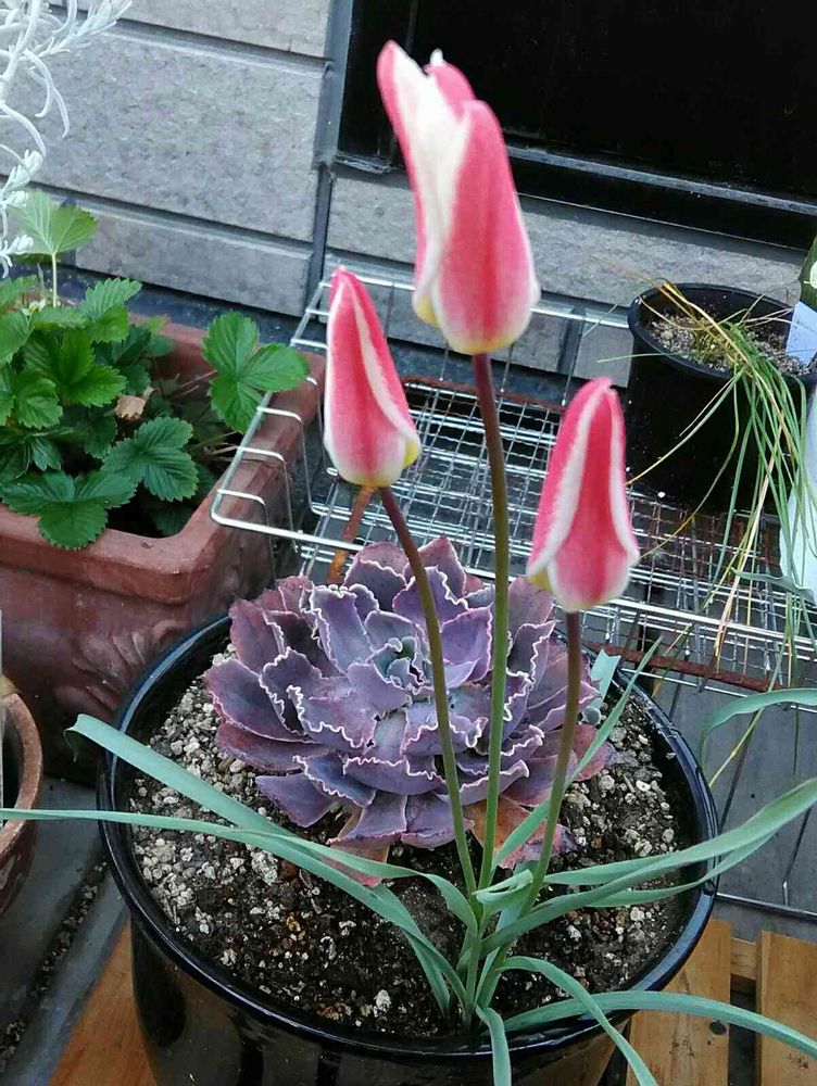 よりによって多肉さんの鉢にチューリップが紛れていたとは…