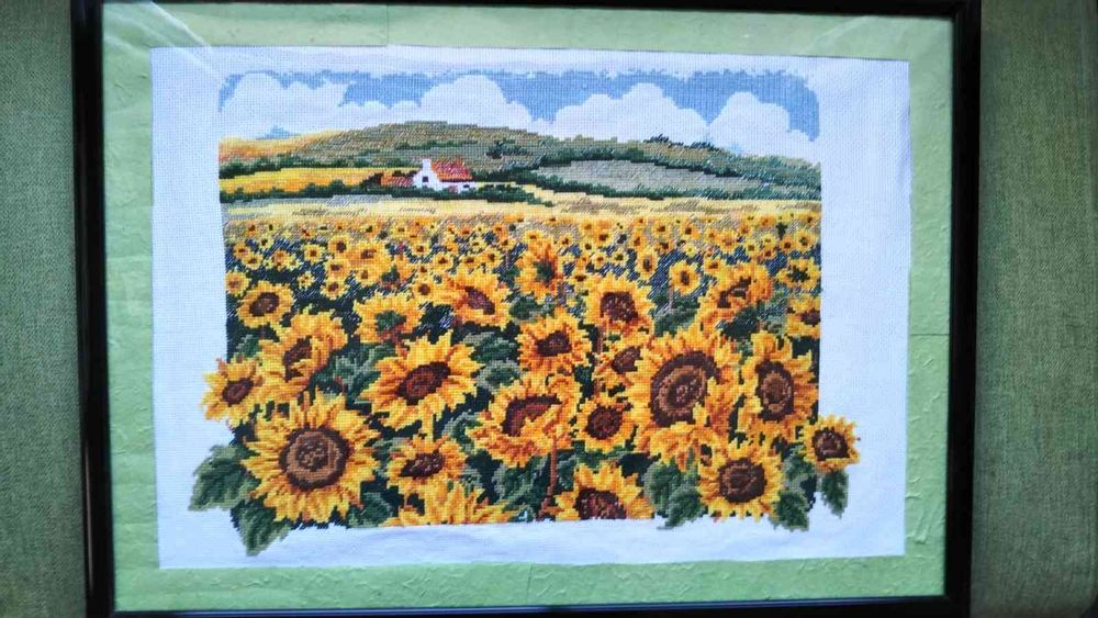 ひまわりのクロスステッチ刺繍が仕上がりました😄