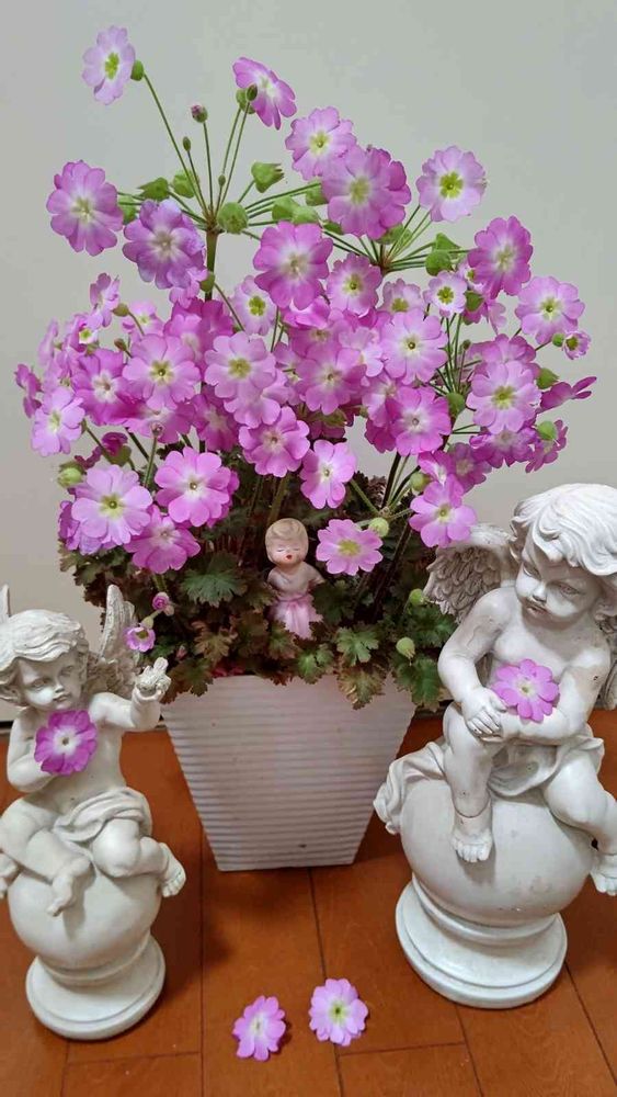 花色の優しいサクラソウと👼は相性ぴったり(^o^)vウフフ
