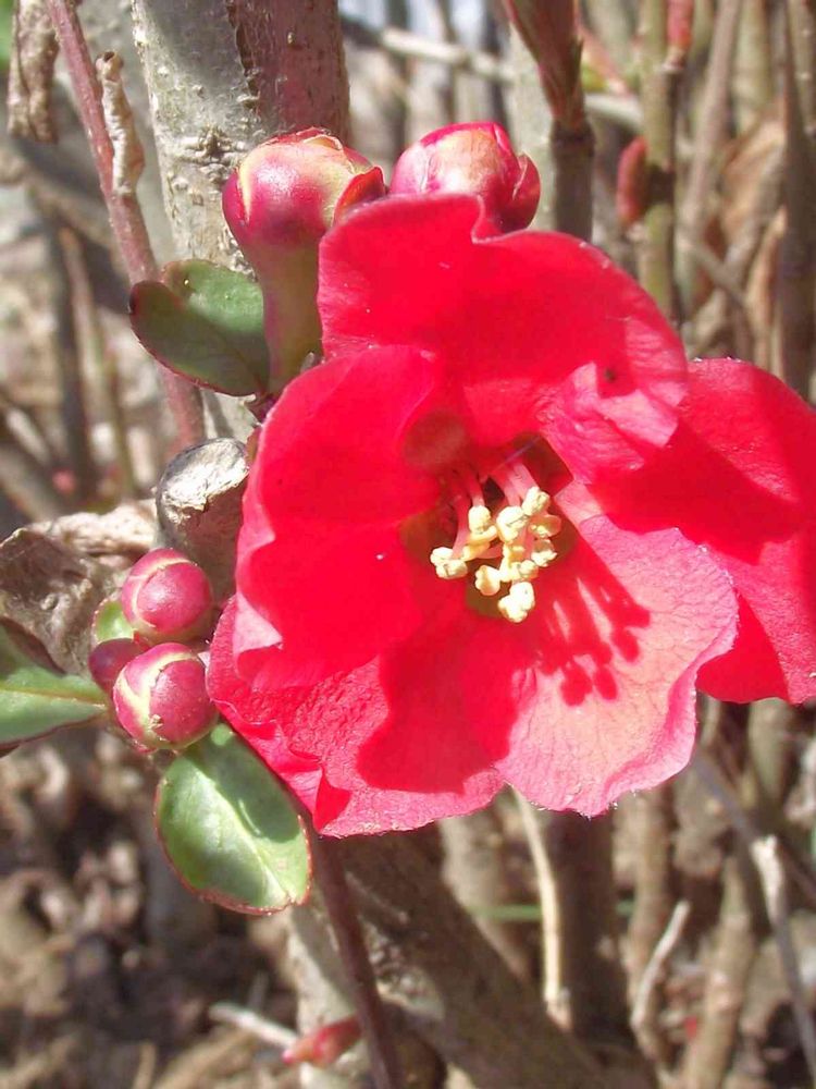 真っ赤なボケの花