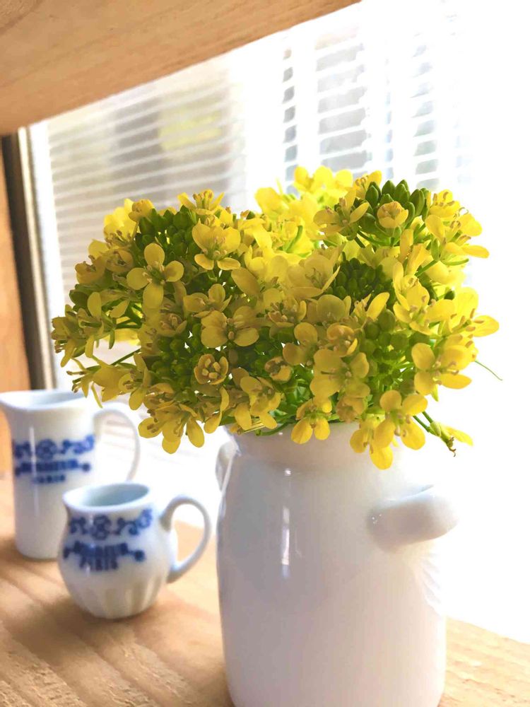 今年初めて植えた家庭菜園の小松菜にニョキニョキ可愛い🌼が咲いています。