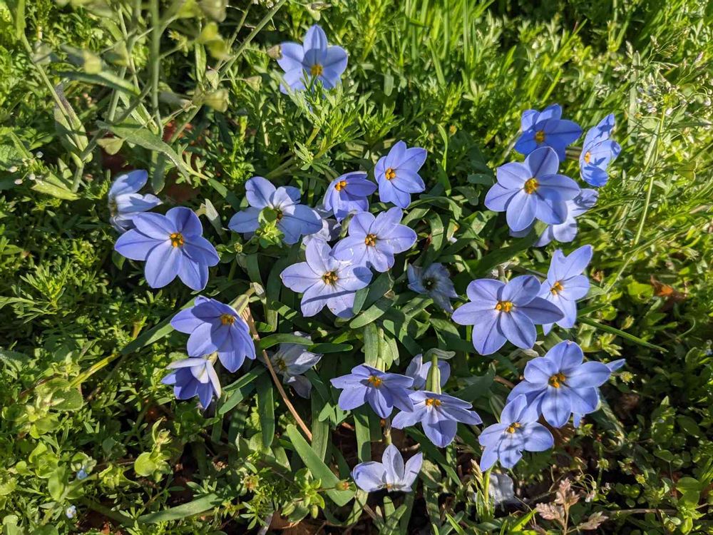 朝陽を浴びてハナニラがきれいに咲いてます。(^^)
