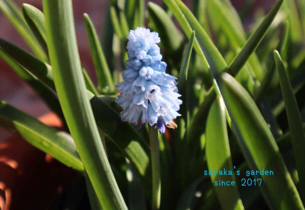 ムスカリ水色ドレス👗、遅れて咲いてきた子😃