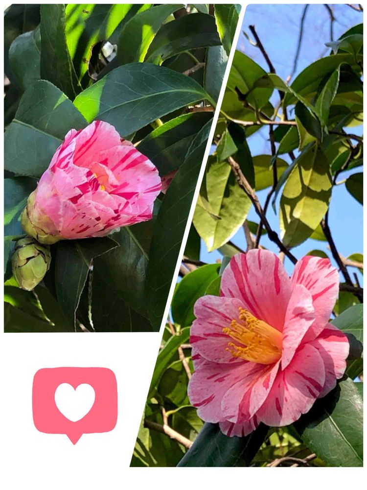 沢山の椿のお花のご紹介、楽しく拝見致しました 💐 こちらはピンクにランダムな濃いめのピンクストライプ 💛 和は勿論、洋なお庭にもマッチするかもしれませんね 🎵