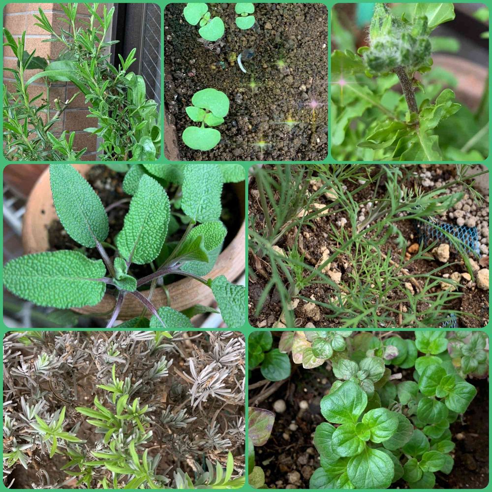 ローズマリー、青しそ、ルッコラ、ディル、カラミンサ、ラベンダー、セージ。