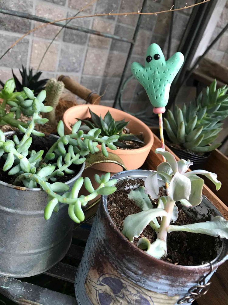 リメ鉢はsaoiちゃん。中にはこっつんちゃんに貰ってかなり姿が変わった何とかの翁(笑)✂️しました。根っこ出るかな?最近切って刺すが止まらない。根付かなかったらどうしよう~