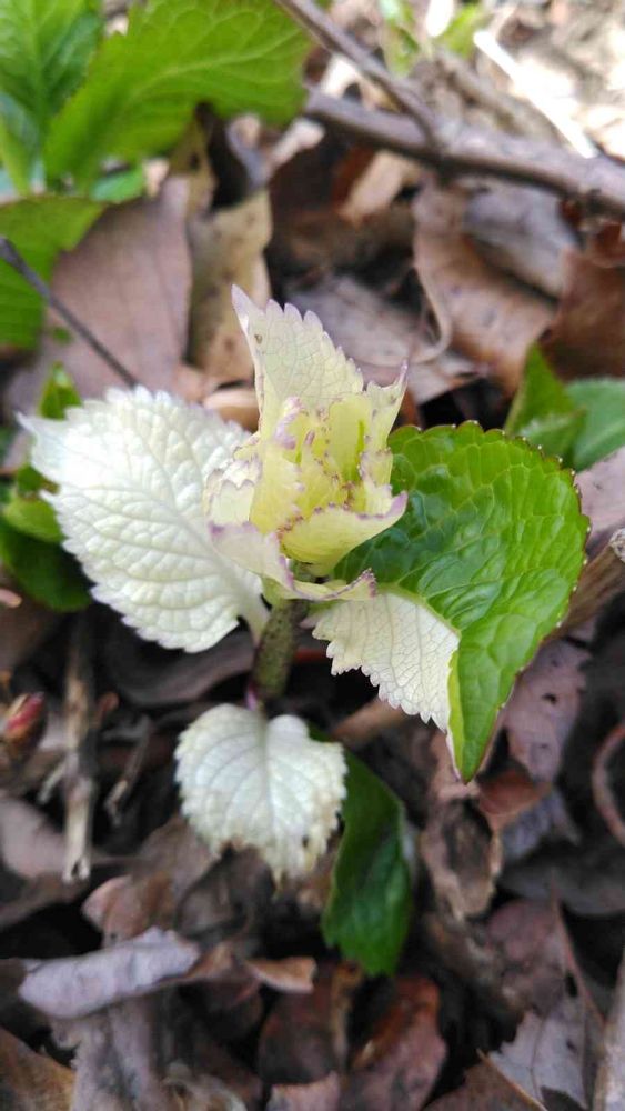 紫陽花でレモンウェーブのような葉っぱの斑入りは 他の品種でも見たりしますが、