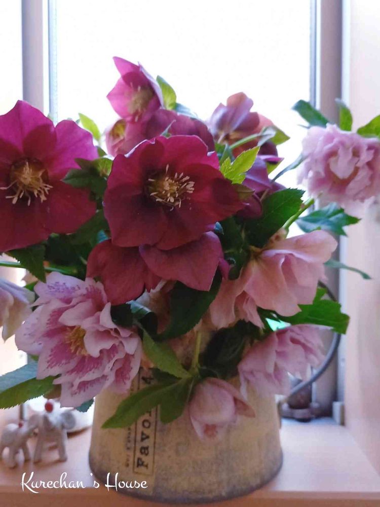 存在感があり繊細な表情のクリスマスローズが、いつもの空間を癒してくれてます