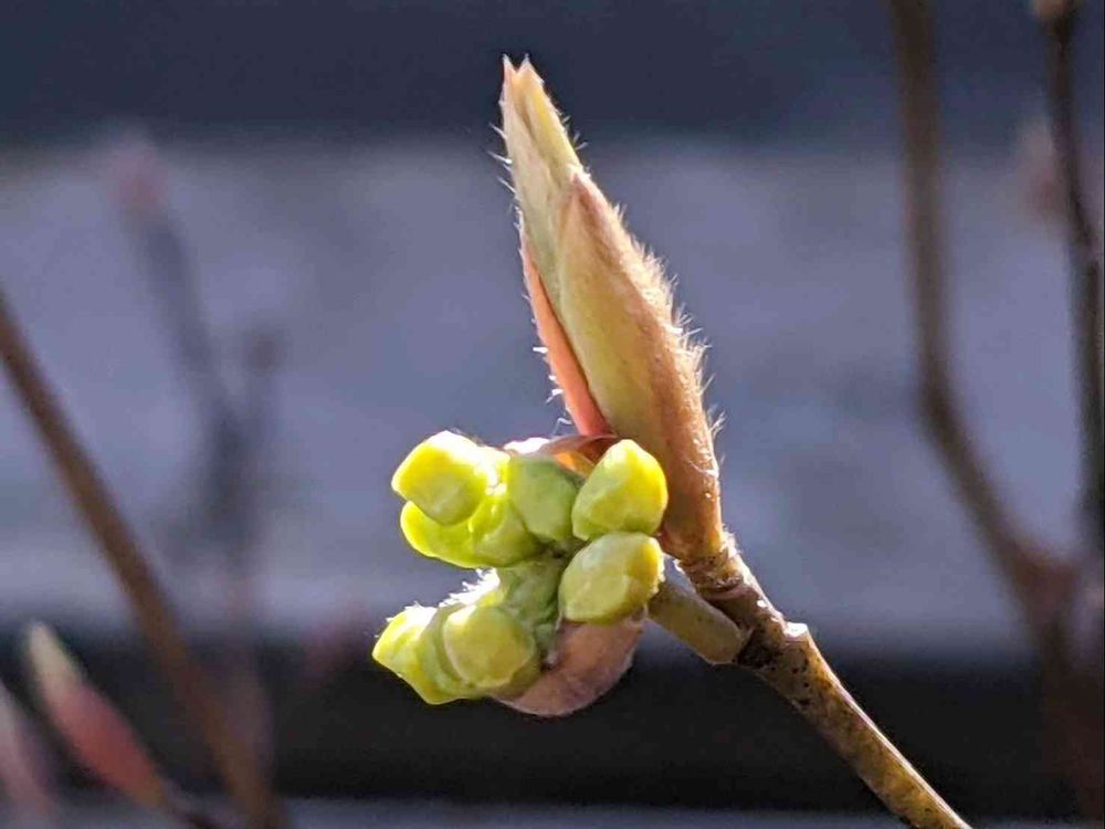 枝が高級楊枝になる黒文字…と書くとは知りませんでした…には葉と蕾が同時に出来てきました。名前の由来には、樹皮に黒い点々があるのを文字に見立てたという説があるそうです。