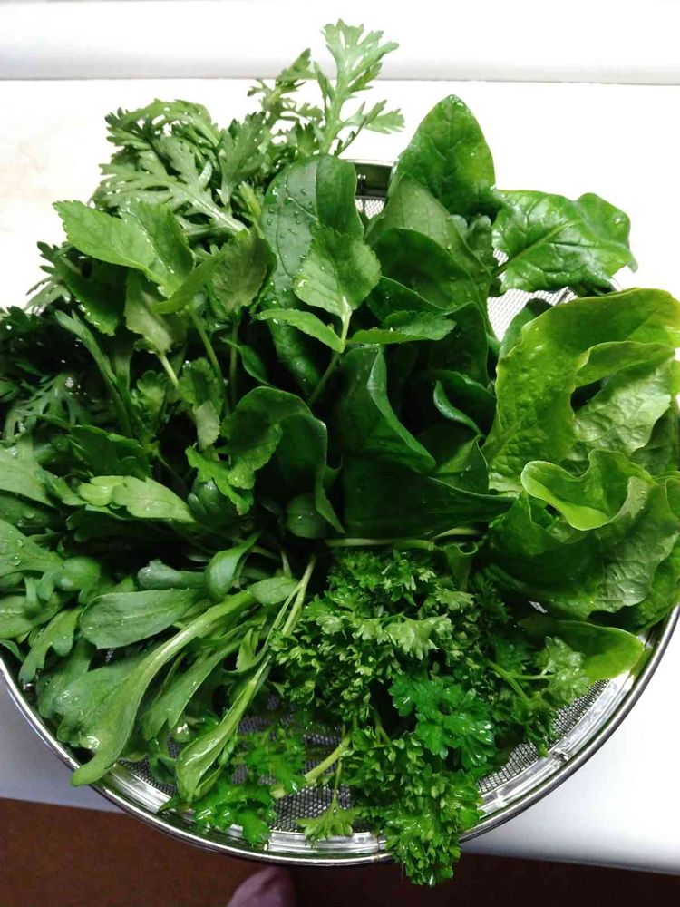 春菊、三つ葉、新菊、パセリ、ルッコラ、ほうれん草。